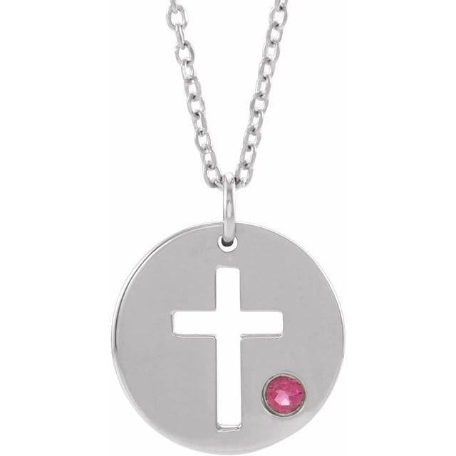 14K White Pierced Cross Disc 16-18" Necklace