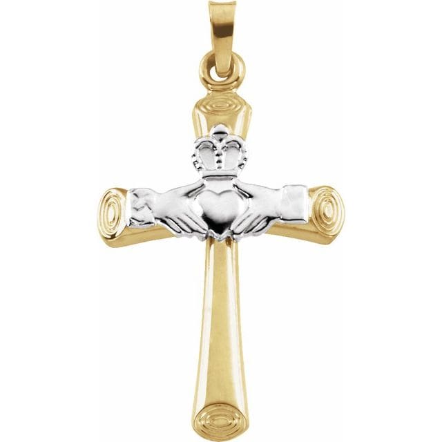 14K Yellow/White 27×19.5 mm Hollow Claddagh Cross Pendant