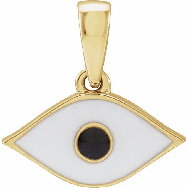 14K Yellow White Enamel Evil Eye Pendant
