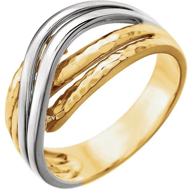 14K Yellow/White Rhodium-Plated Criss-Cross Hammered Ring