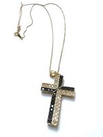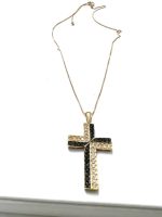 Spring ring clasp, white and black diamond cross pendant necklace.