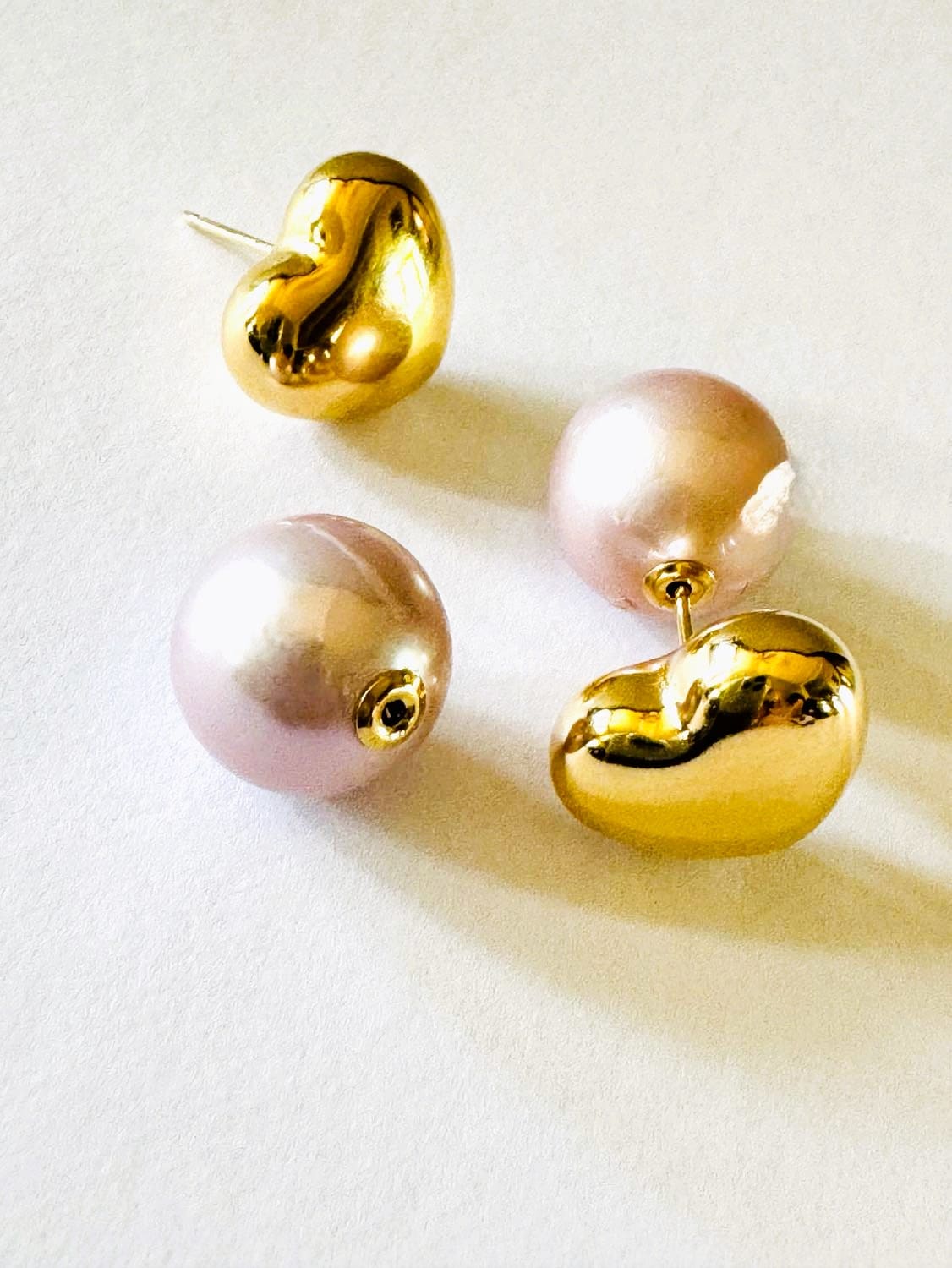 These heart and pearl earrings are bold and timeless. Composed of 18k gold heart-shaped and pinkish authentic pearls, they are completed by well polished-finish 18k gold metal. The design is a prime example of the evolution of one of most iconic styles and will elegantly adapt to any look.