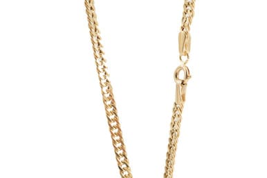 Celebrate your faith with this religious face symbol set in 18k yellow-gold pendant necklace. This jewelry weighs 6.7 grams , 18 inches length, curb chain.