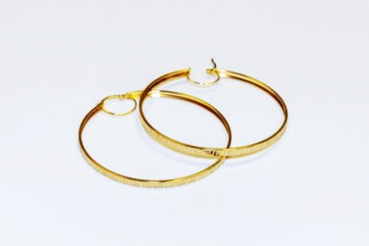 Together, a Greek-design and oval silhouette distinguish these classic hoop earrings–making them a stylish standout in your jewelry collection. Crafted in 18k gold solid gold. Approximate diameter: 2.5 inches.