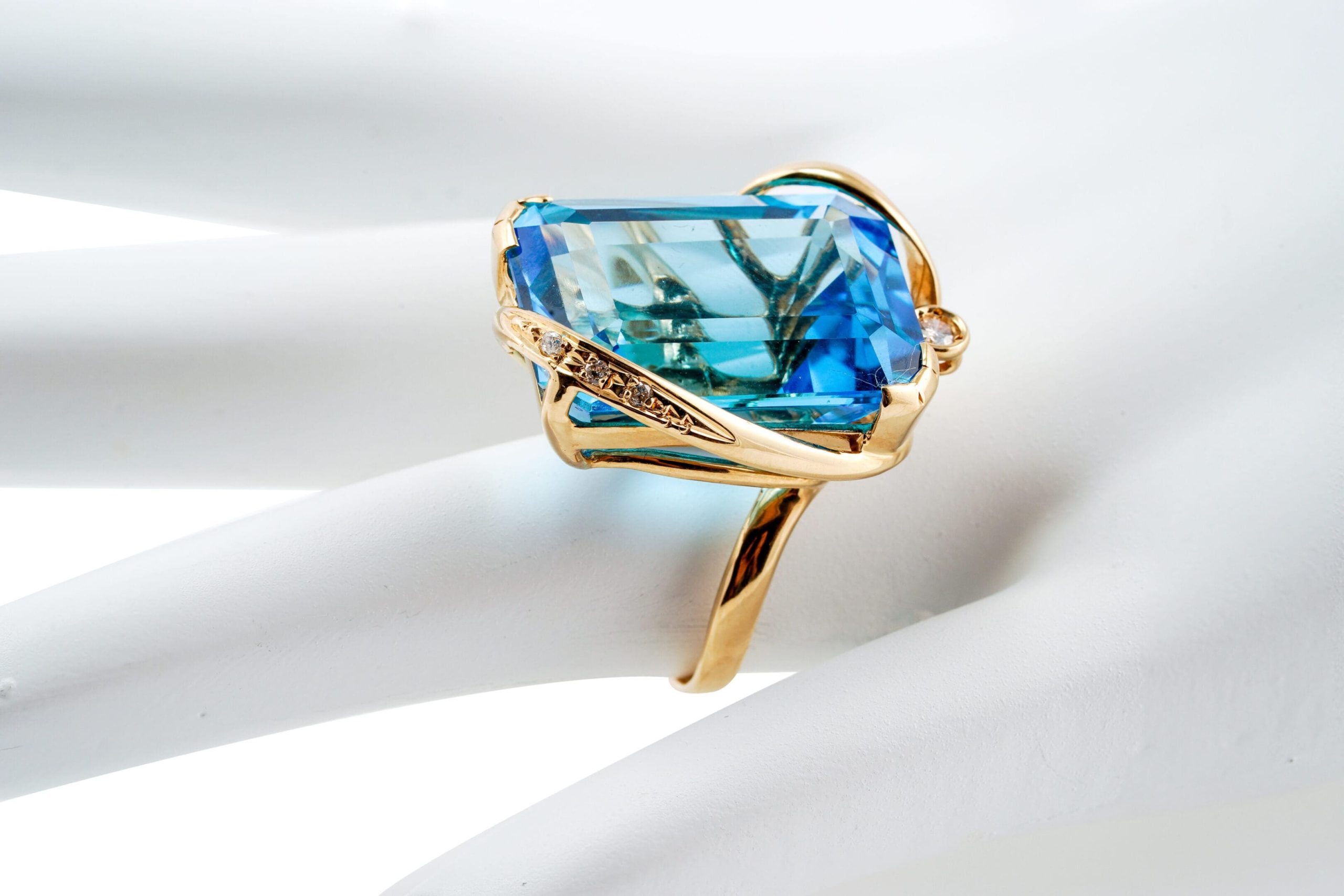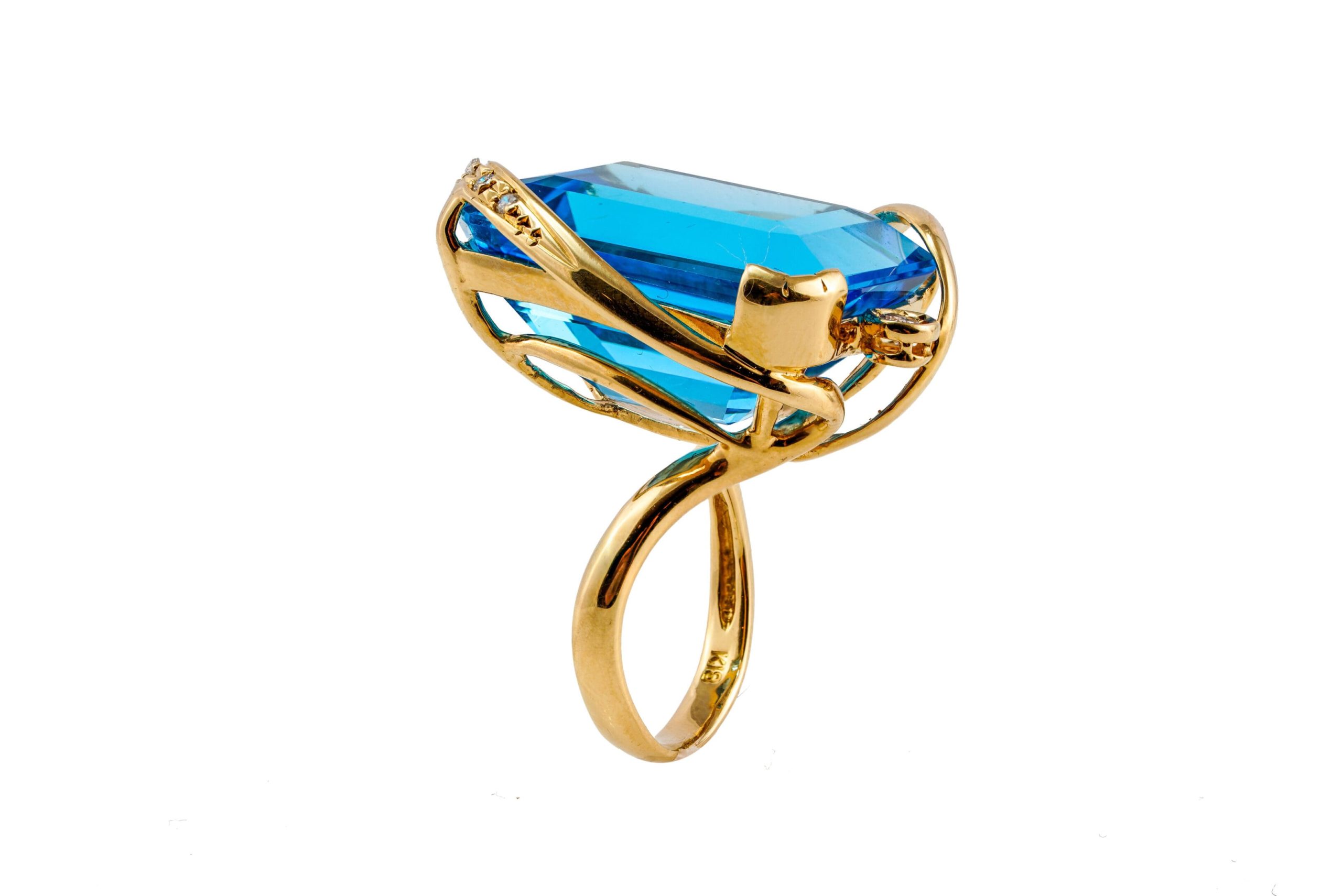 18k Swiss Blue Topaz Diamond Ring S4.5