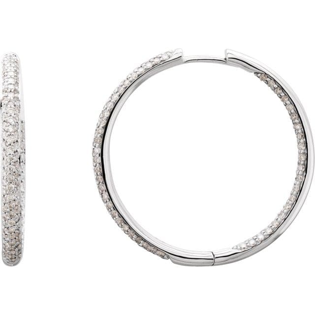 18K White 1 CTW Natural Diamond Inside-Outside Hinged 24 mm Hoop Earrings