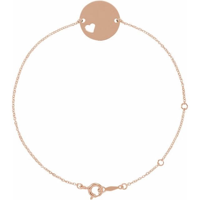18K Yellow Gold-Plated Sterling Silver Engravable Pierced Heart Disc 7-8″ Bracelet