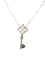 18k Yellow -Gold White Key Pendant Necklace 18″ L