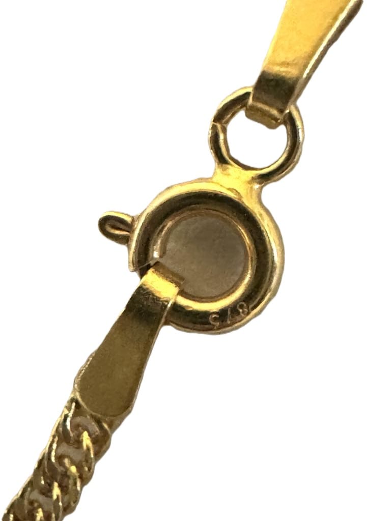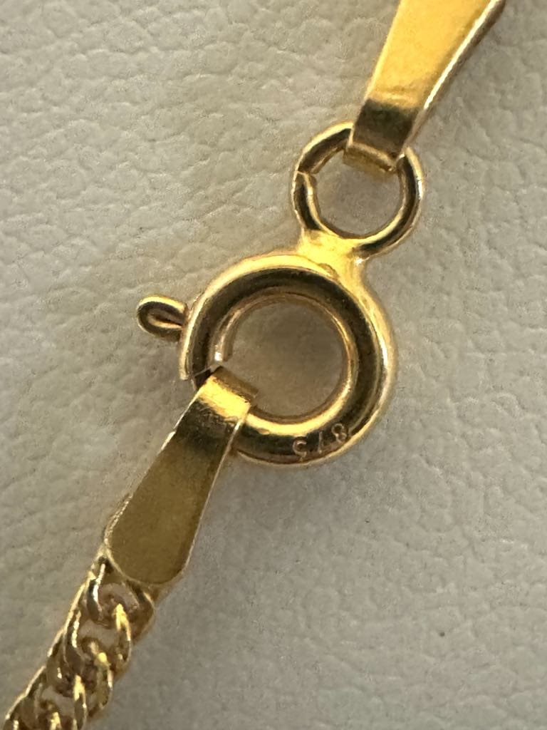 Rare 21k yellow- gold necklace weighs approximately 5.1 grams and 17 inches in length.