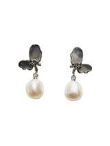 925 Sterling Silver Shell-Designed Natural Pearl Earrings 0.96 Inches