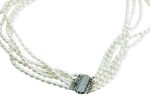 18 inches of white cultured freshwater pearls (5-6mm)… now that’s a wrap! 5-Layered strand up for a chic, layered look. This is stunning look for any woman