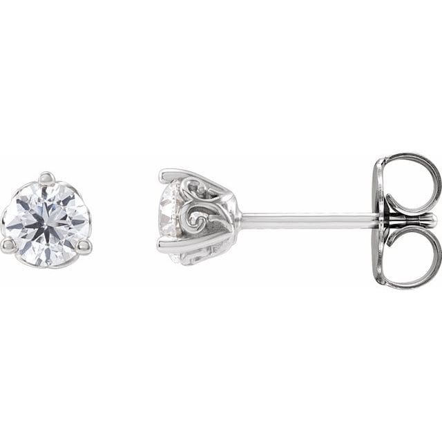 14K White 4 mm Round 3-Prong Fleur-de-Lis Earring Mounting
