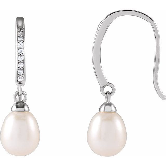 Be the first to review “Rhodium-Plated Sterling Silver Cultured White Freshwater Pearl & Imitation Cubic Zirconia Earrings” Cancel reply
