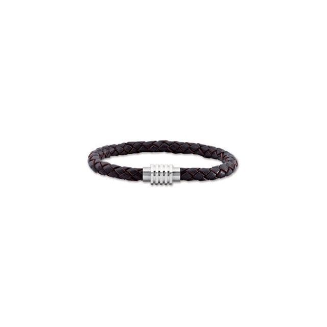 Stainless Steel & 6 mm Black Braided Leather 8″ Bracelet