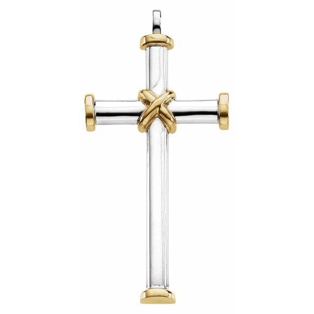 Sterling Silver & 14K Yellow 51×26.25 mm Cross Pendant