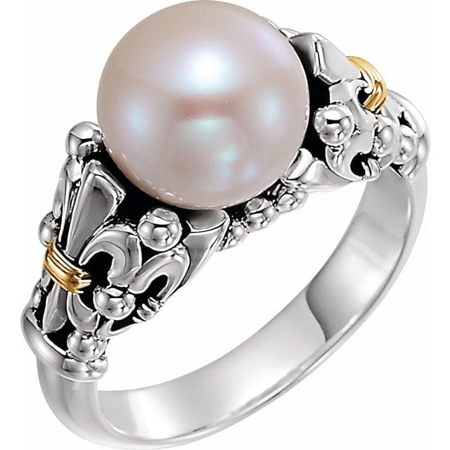 Be the first to review “Sterling Silver & 14K Yellow Cultured White Freshwater Pearl Fleur-de-lis Ring” Cancel reply