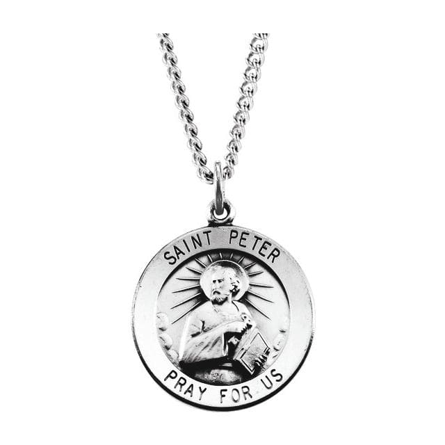 Sterling Silver 18 mm Round St. Peter 18″ Necklace