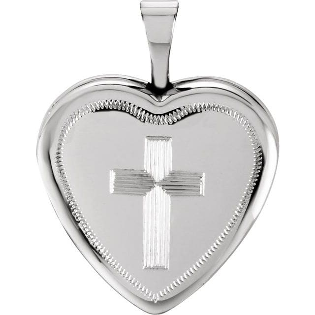 Sterling Silver 20.7×15.7 mm Cross Heart Locket