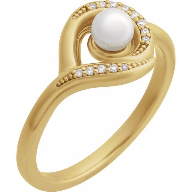 14K White Cultured Black Akoya Pearl & .03 CTW Natural Diamond Ring