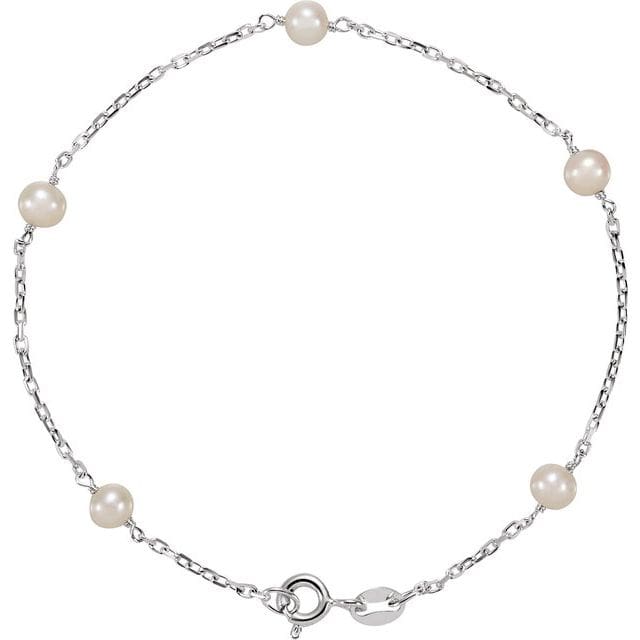 Sterling Silver Cultured White Freshwater Pearl 5-Station 7.5″ Bracelet
