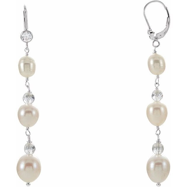 Sterling Silver Cultured White Freshwater Pearl & Imitation Cubic Zirconia Earrings