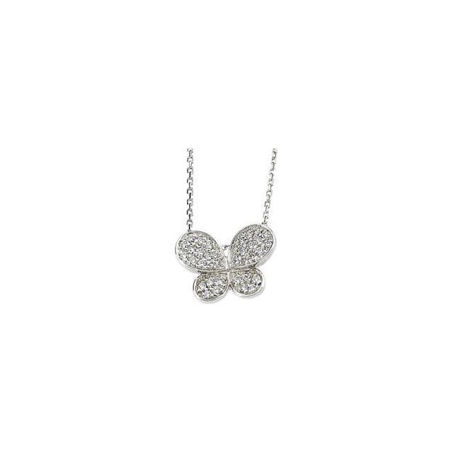 Sterling Silver Imitation White Cubic Zirconia Butterfly 18″ Necklace