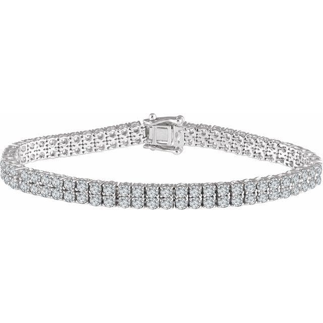 Sterling Silver Imitation White Cubic Zirconia Double Row Line 7″ Bracelet