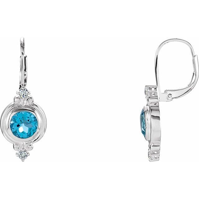 Sterling Silver Natural Swiss Blue Topaz & Imitation White Cubic Zirconia Earrings