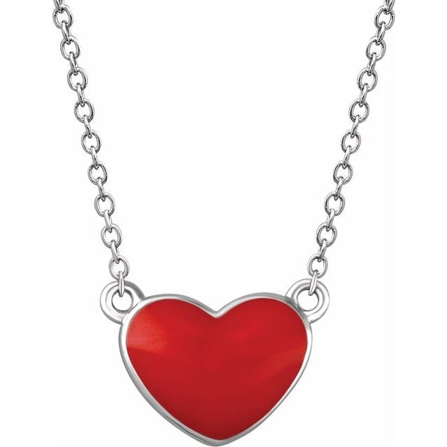 Sterling Silver Red Enamel Heart 16-18″ Necklace