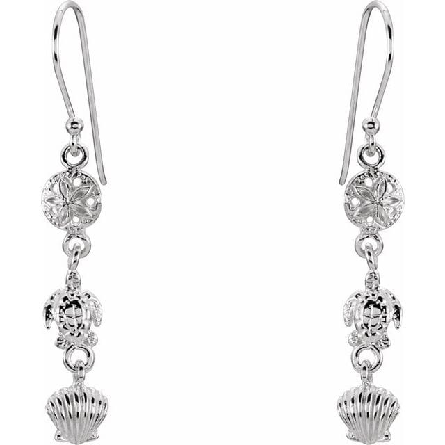 Sterling Silver Sand Dollar, Turtle, & Shell Earrings