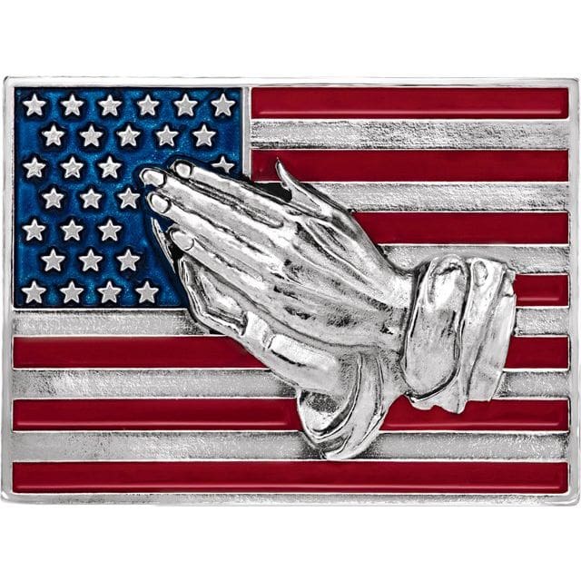 Be the first to review “Sterling Silver with Red, White, Blue Epoxy American Flag with Praying Hands Lapel Pin” Cancel reply