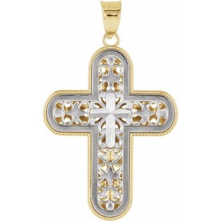 14K White/Yellow Reversible Cross Pendant