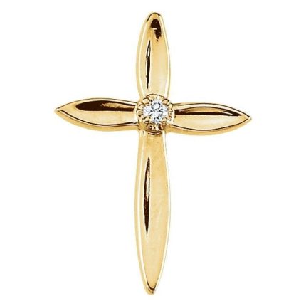 14K Yellow .025 CT Natural Diamond Cross Pendant