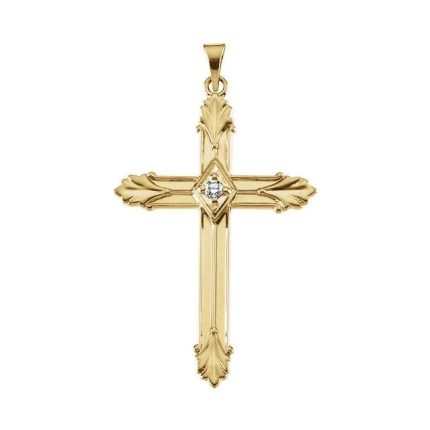 14K Yellow .05 CTW Natural Diamond Hollow Cross Pendant