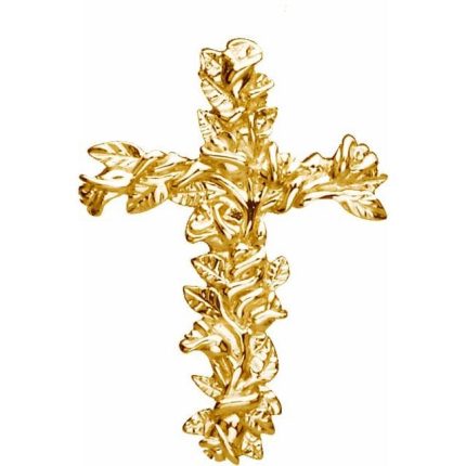 14K Yellow 26.5×19.25 mm Floral-Inspired Cross Pendant