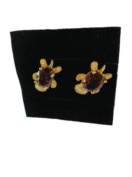 2.00 ct. t.w. round Oval mixed cut natural garnet gemstones sparkle with diamonds turtle-shaped earrings set in 18kt yellow- gold.