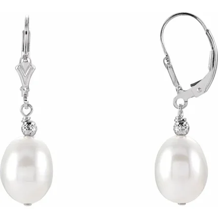 Sterling Silver 9-9.5 mm Freshwater Cultured Pearl Earrings